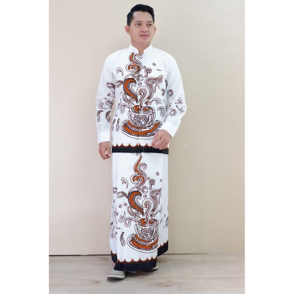 Best Seller Pakaian di Kabupaten Lombok Tengah Wedangan Putih Sogan Set Sarung Kemeja Batik Pria Batik Solo Full Furing Bahan Katun Sragenan dari Tidak Ada Merek Kab. Sukoharjo