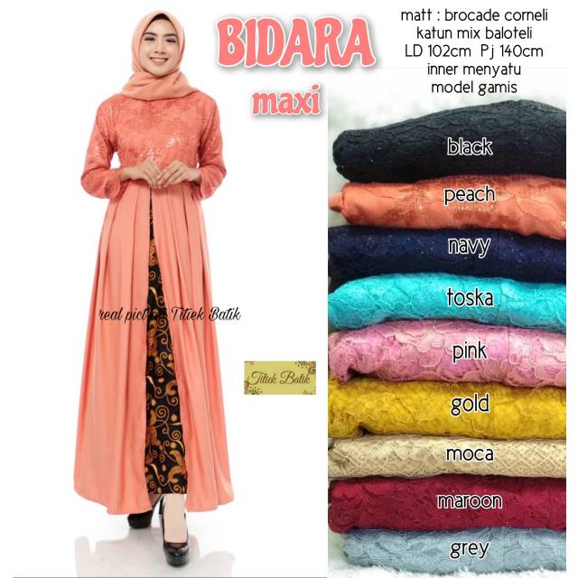 Name: Gamis Batik Bidara Maxy Inner Nyatu Bahan Katun Brokat Mix Baloteli Murah Solo